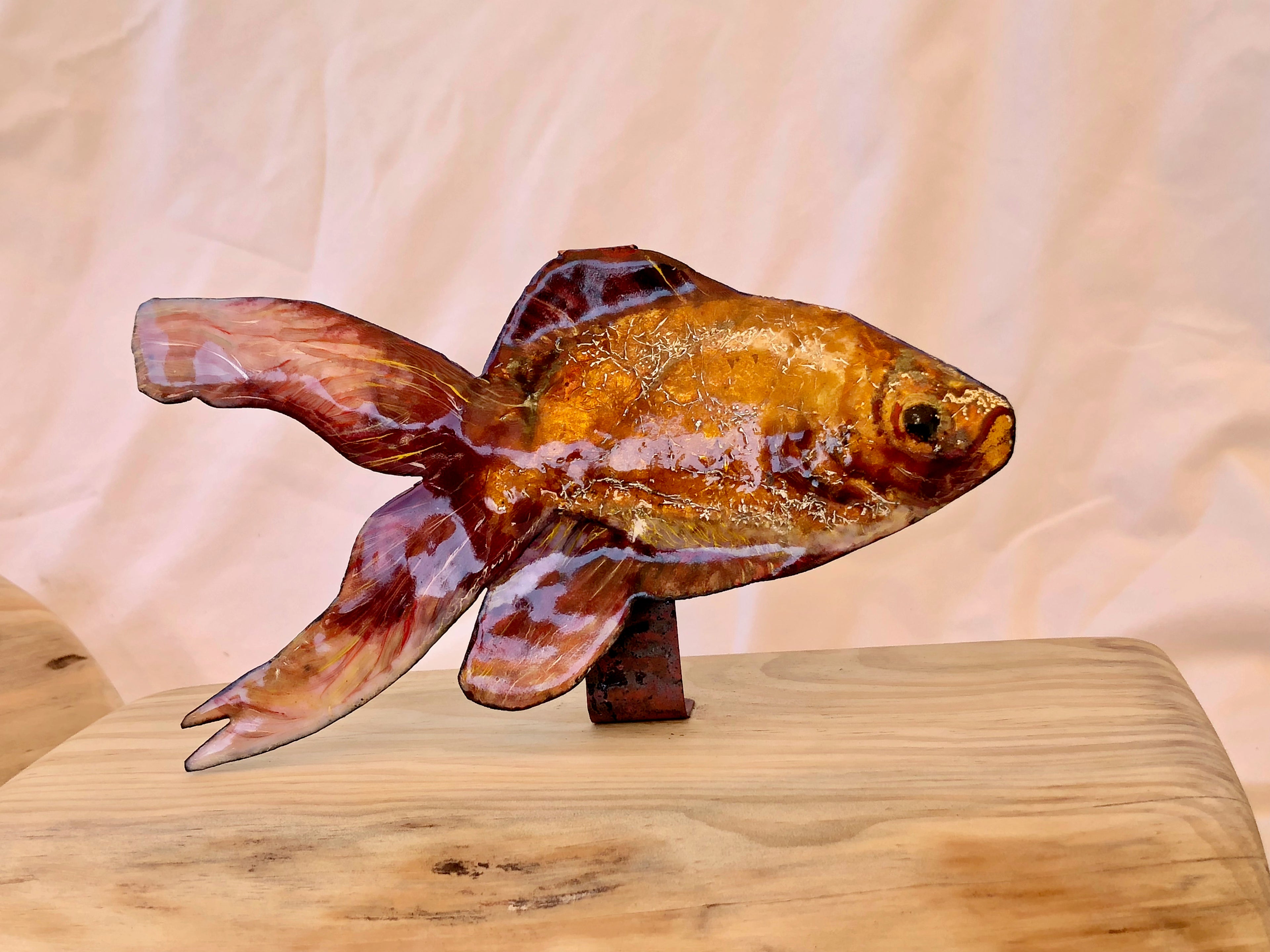 After the design in paper is final the shape is cut from a sheet of copper, edges filed, and volume is given with a hammer.