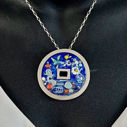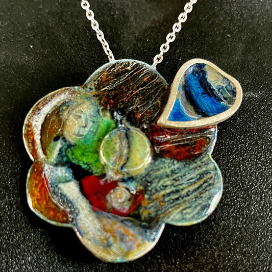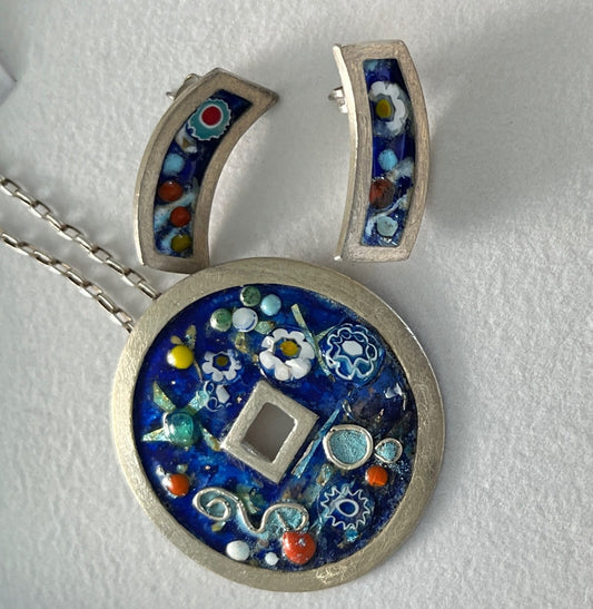 The enamel is fussed on the metal at 1500 degrees F. several times, depending on the complexity of the piece.