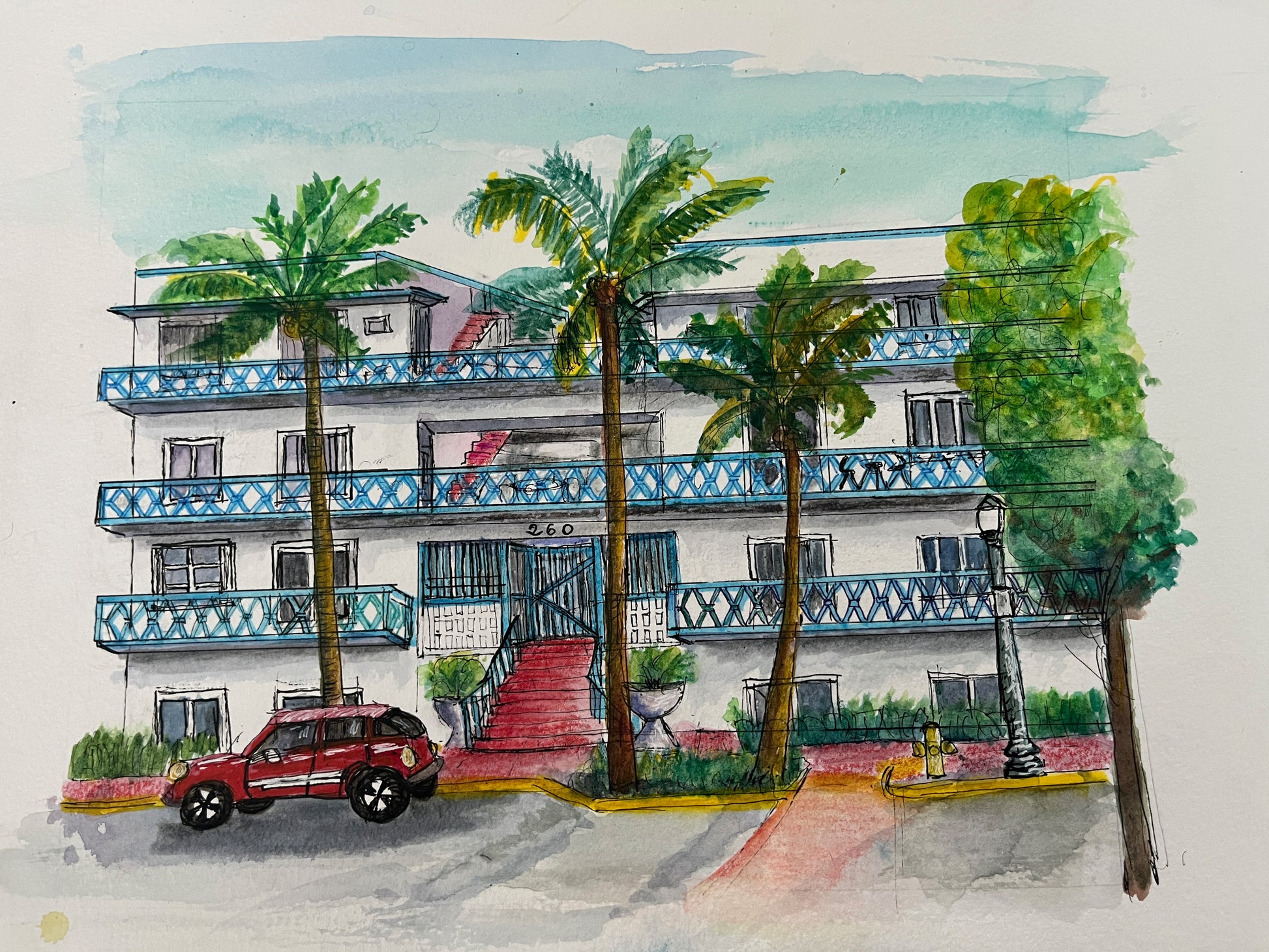 CUSTOM HOUSE PORTRAIT, Mimo building from Miami Beach