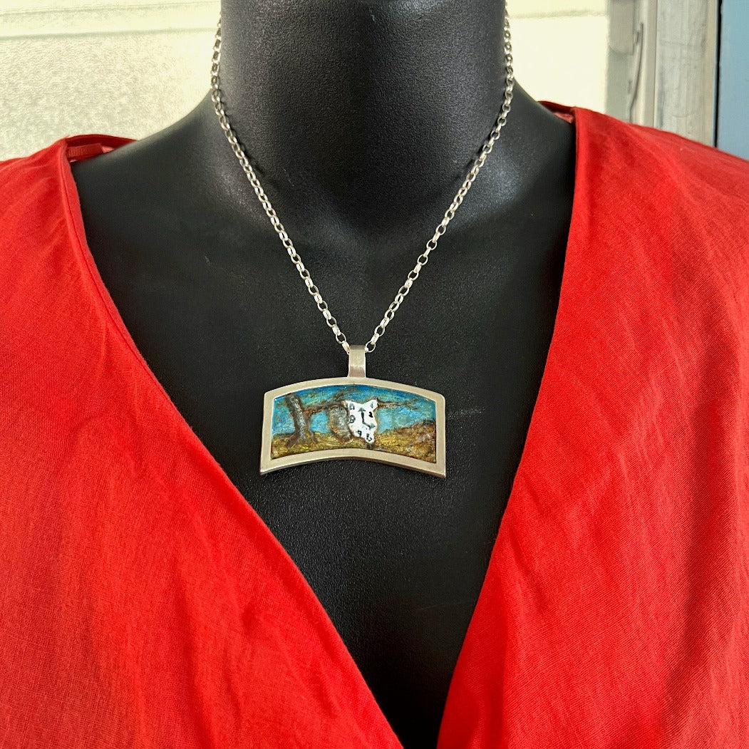 Dali's Clock, Sterling Silver Pendant with Enamel