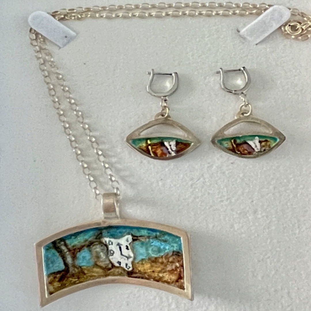 Silver pendant, designed by Ana Andras, with vitreous enamel fussed on the silver at 1500 degrees F. The design was made with the enamel to represent the Persistence of Memory from Salvador Dali.
