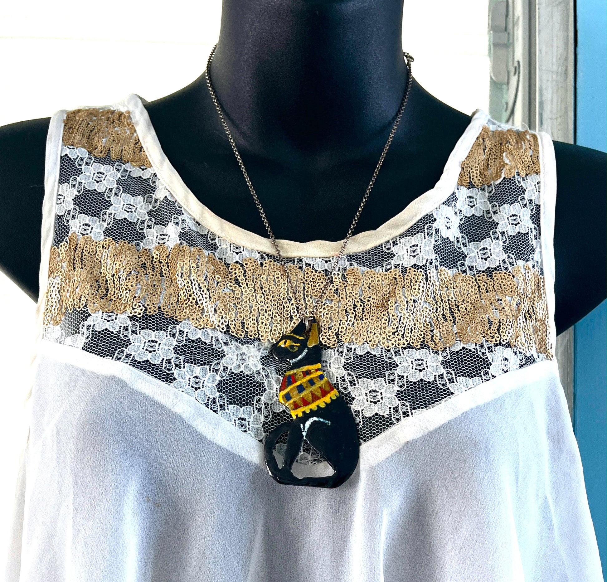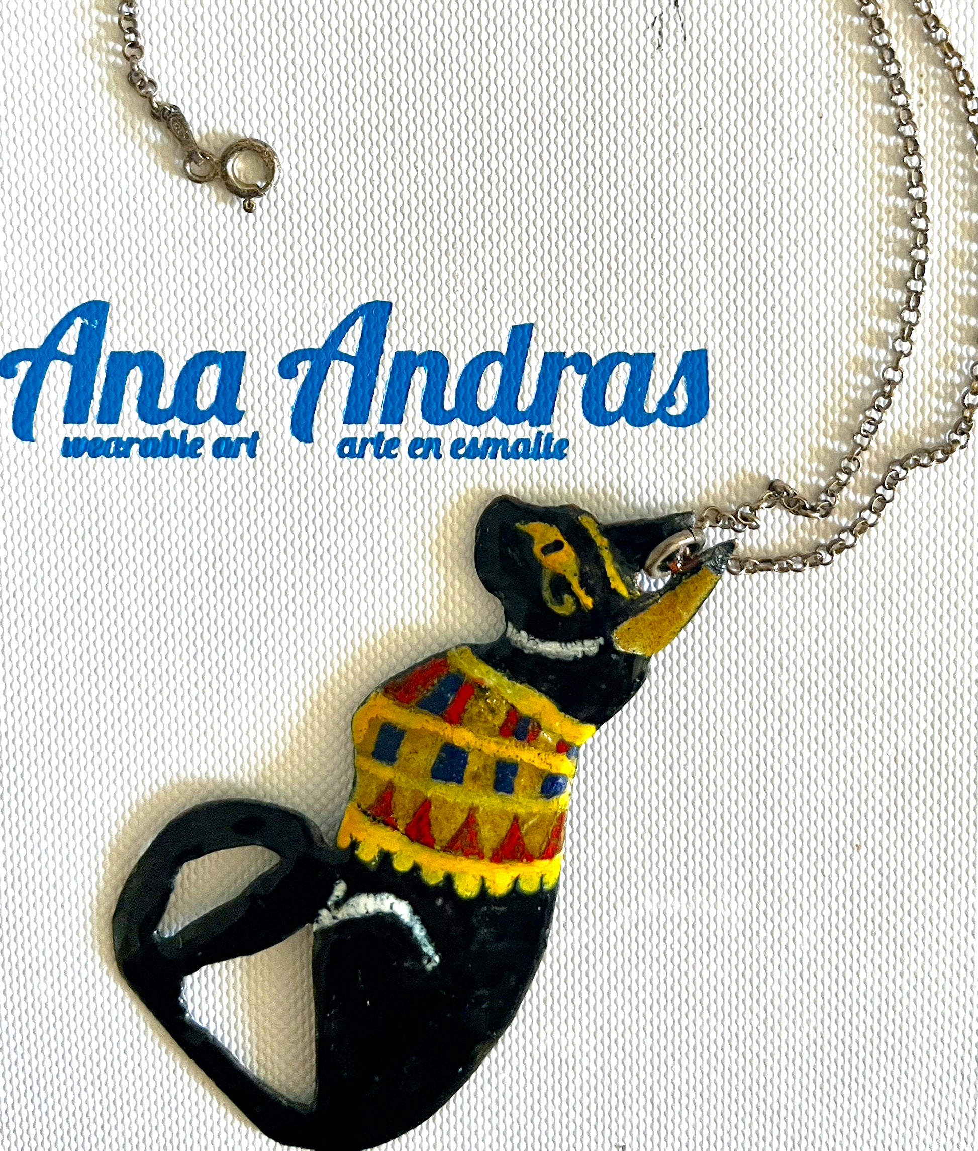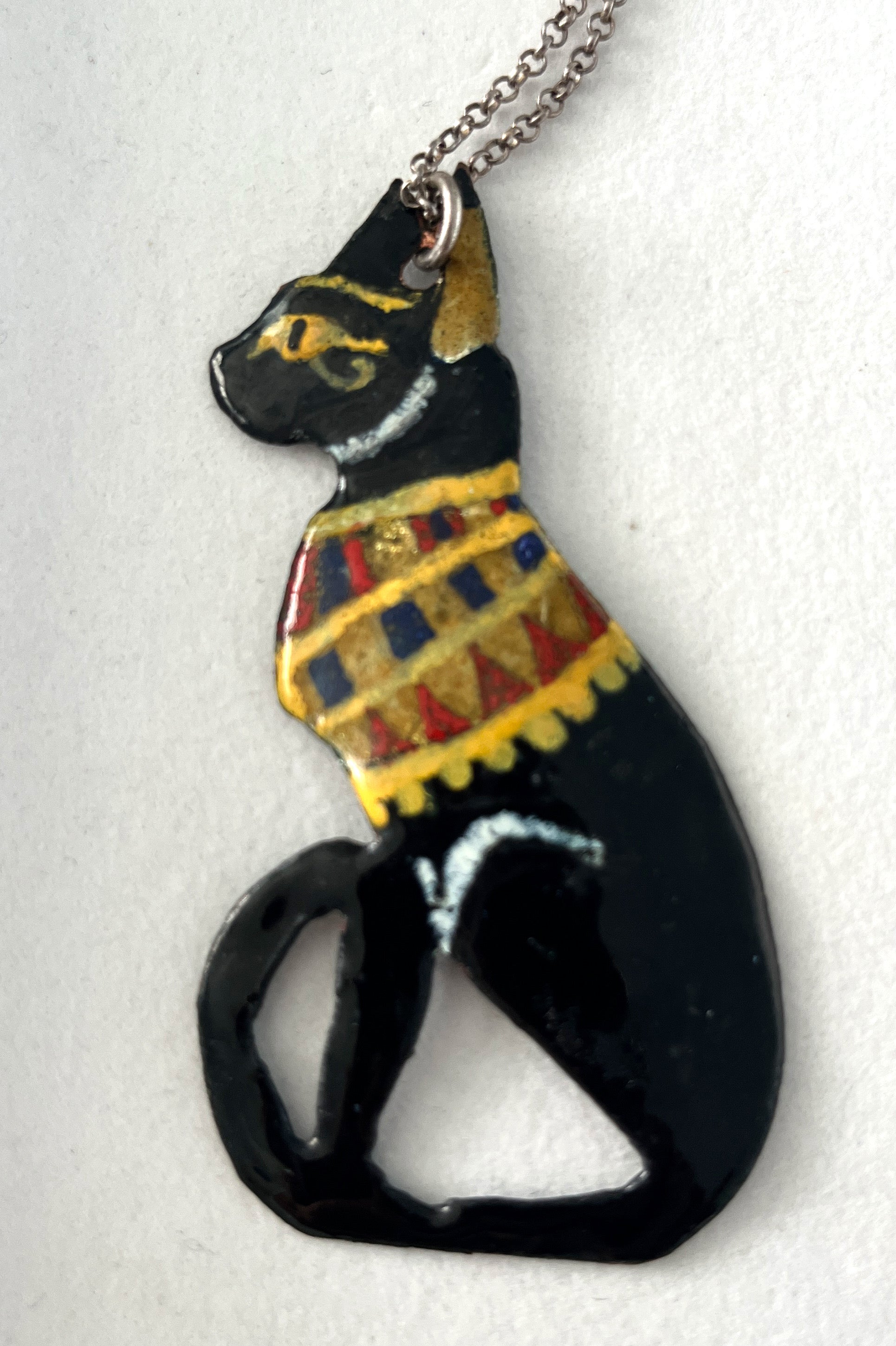 ENAMEL SCULTURE WITH JEWELRY EGYPTIAN CAT