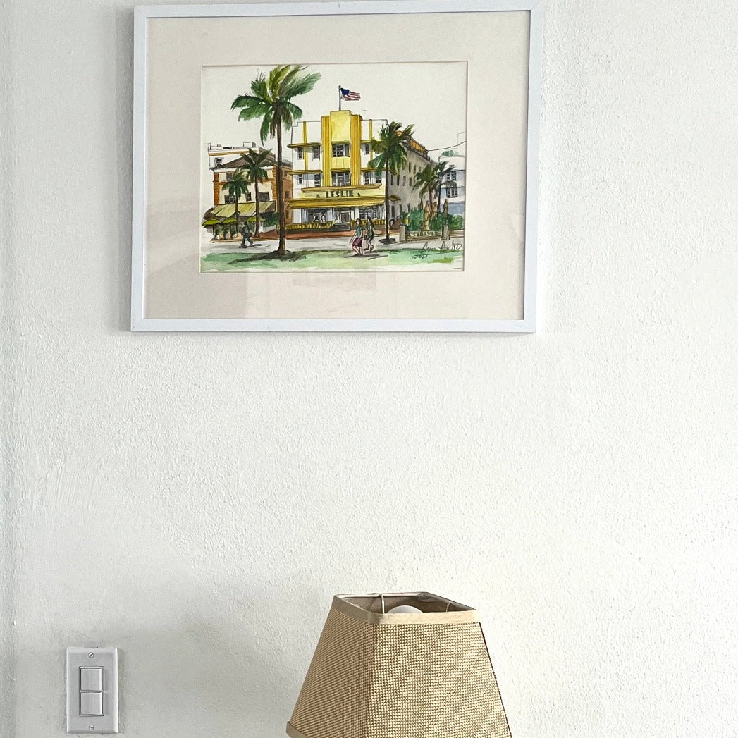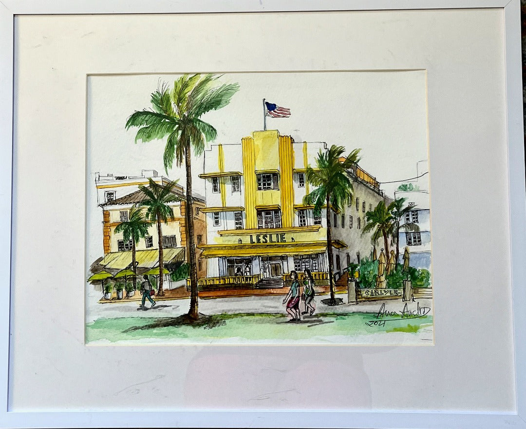 This watercolor drawing was made in Ocean Drive, right in front of this famous hotel Leslie.
