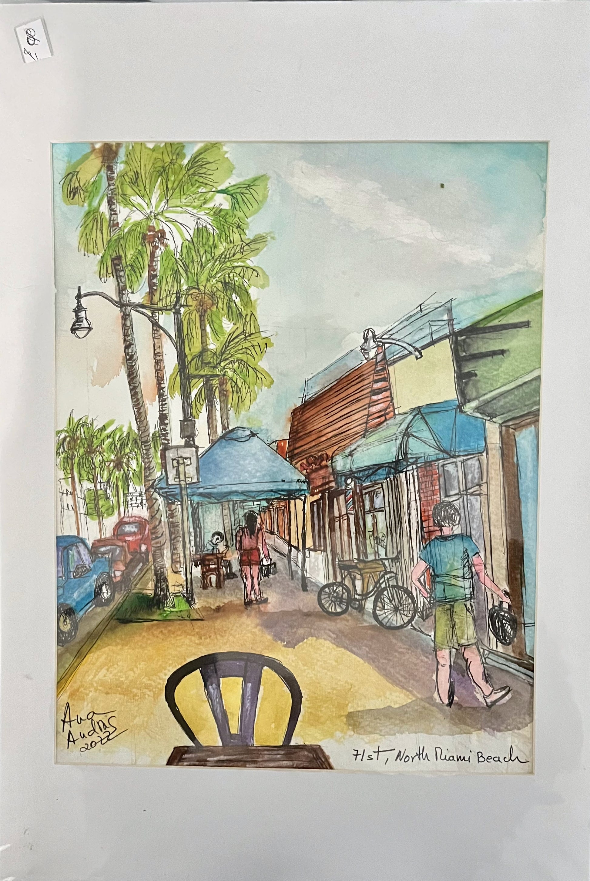 ORIGINAL WATERCOLOR, NORMANDY ISLE, NOTH MIAMI BEACH